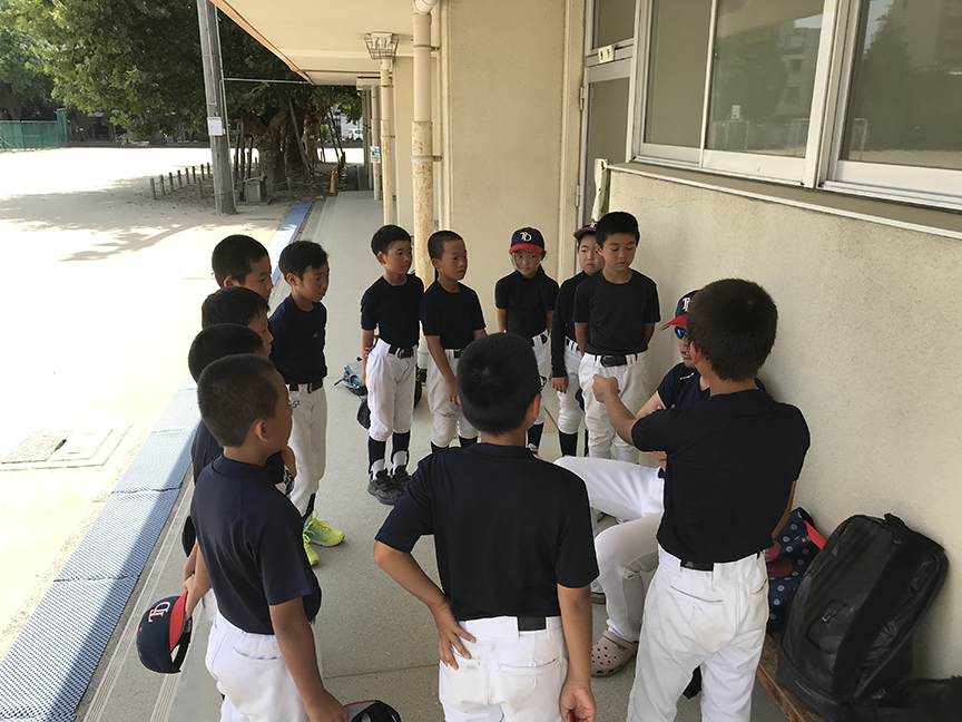 天満小学校に帰って、今日の振り返りと反省会。みんな少しずつ少しずつ、野球が上手になってきています。